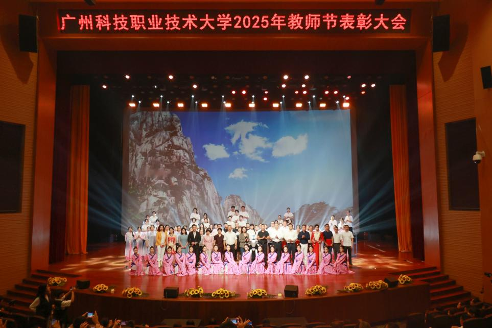 (广科大新闻网讯)9月10日,我校在广科大剧院举行“以教育家精神铸魂强师,谱写教育强国建设华章”为主题的庆祝第41个教师节暨表彰大会,向全体教职员工致以节日的问候与崇高的敬意。大会现场学校举办者、广东景大经济发展有限公司董事长冯兵昌,学校董事长卢彩凤,校长张连绪,校党委书记冯小宁等校领导,2024-2025学年“优秀教师”“先进教育工作者”“教学名师”“国赛省赛优秀指导教师代表”、学校“忠诚服务奖”“桃李匠心奖”获得者、全体中层干部、教师代表和学生代表出席了此次大会。大会由校党委书记冯小宁主持。 校董领导寄语:锚定方向,共绘教育发展蓝图大会开始前,《广科大教师风采》宣传片温情播放,全面展现了广科大教师们的精神风貌与专业素养,为表彰大会营造...