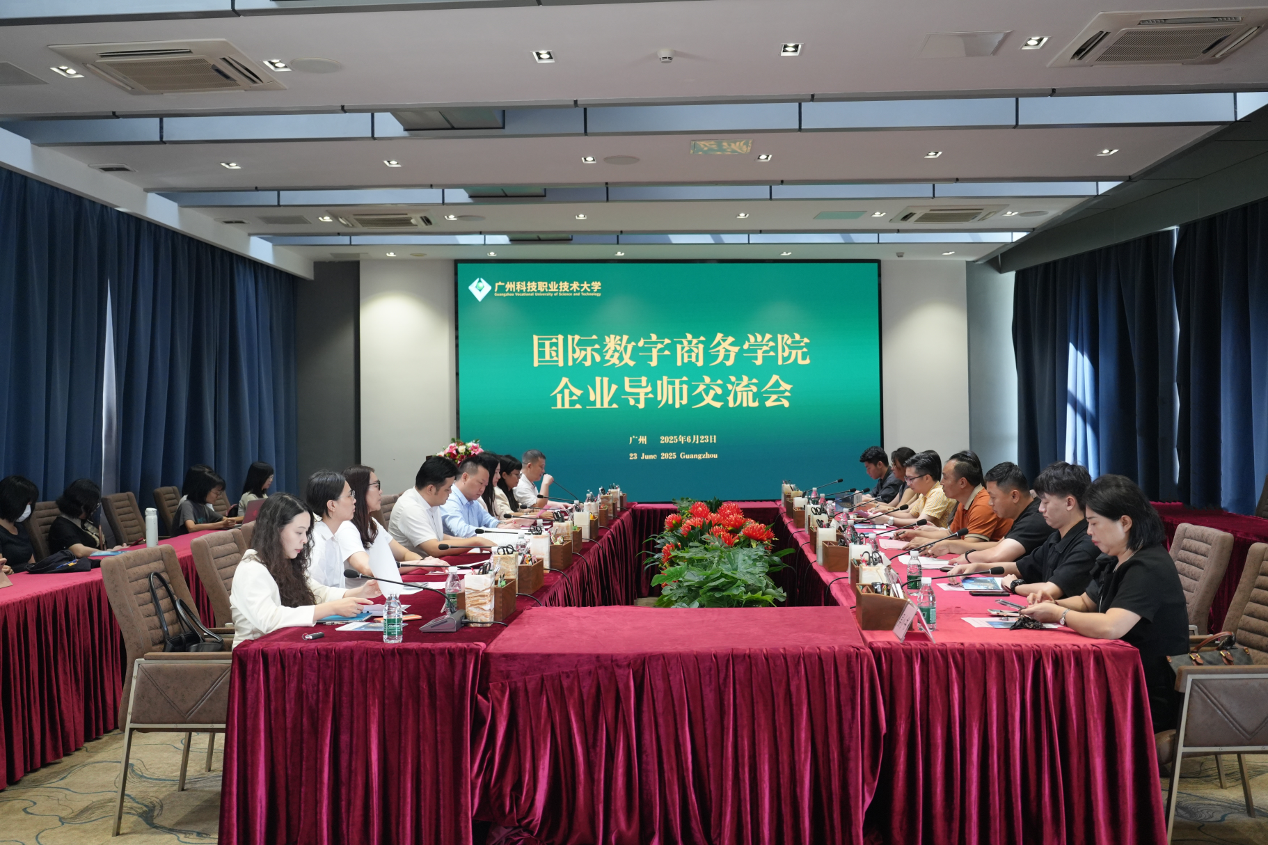 (广科大新闻网讯)6月23日上午,我校国际数字商务学院企业导师交流会在图书馆五楼会议室召开。本次会议以“校企‘互谋 共促’数字贸易高端技能人才培养”为主题,汇聚了校方领导、企业代表及学院师生,共同探讨产教融合新路径,构建校企协同育人新格局。阿里巴巴国际站南粤大区人才负责人谭晓莉、深圳市博意悦创科技有限公司总经理王恭亮、广州希利服饰有限公司总经理林志烈、广州大匠电子商务有限公司总经理肖鸣声、佛山斑驳电子商务有限公司总经理邓健宇、广州新思路教育科技有限公司总经理马茜茜、深圳市恒元烁管理咨询有限公司总经理吴小书、广州大洋教育科技股份有限公司总监陈全恩、中山林达咖传媒策划有限公司总监陈艺林等十余位行业精英,学校副校长张浩、副校...