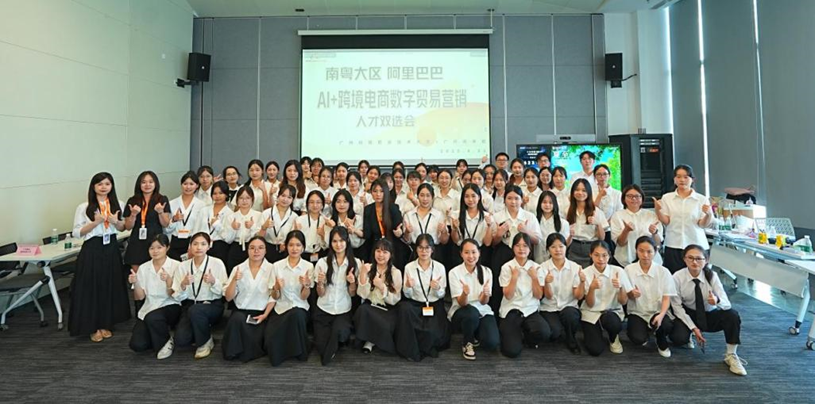 (广科大新闻网讯)为深化产教融合,助推数字贸易人才培养,6月21日,学校党委副书记、副校长张伟彪带队,国际数字商务学院院长杜艳红、副院长李方敏及郑驰达、钟静老师一行赴广州琶洲阿里巴巴中心,参加“AI+跨境电商数字贸易营销人才双选会”暨校企合作洽谈会。国际数字商务学院“数字贸易精英特训班”全体学生共同参与了此次活动。本次活动汇聚了阿里巴巴南粤大区核心商家,涵盖服装、汽车、家居、电子、文创等多个行业,提供外贸业务员、跨境电商运营、推广、客服等近百个岗位。双选会分为学生代表发言、企业宣讲、自由面试及就业意向签订四个环节,不仅为学生搭建了优质的就业平台,也为企业输送了高素质专业人才,实现了学校、企业、学生三方共赢。双选会现场会议伊始,阿里巴...