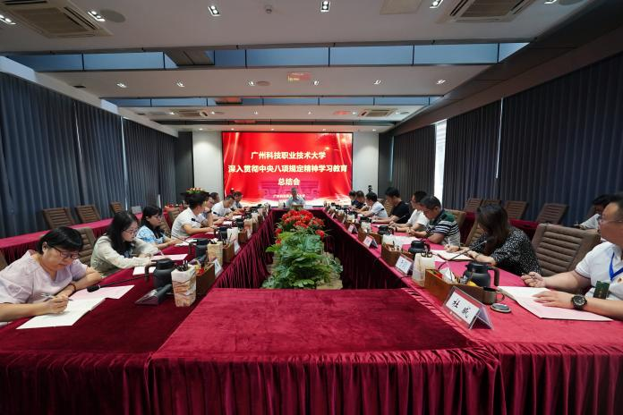 (广科大新闻网讯)9月19日,我校在图书馆五楼会议室召开深入贯彻中央八项规定精神学习教育总结会议,传达学习习近平总书记关于深入贯彻中央八项规定精神学习教育的重要指示和有关会议精神,全面总结学校学习教育工作开展情况,部署推进作风建设常态化长效化工作。学校领导班子成员、党委委员、纪委委员、学院党总支书记、直属党支部书记、机关各党支部书记、学校学习教育工作专班成员参加会议。会议由学校党委委员、副校长刘佳环主持。会议现场校党委委员、副校长刘佳环主持会议校党委书记冯小宁传达学习习近平总书记关于深入贯彻中央八项规定精神学习教育的重要指示和有关会议精神。习近平总书记再次就作风建设作出重要指示,深刻指出党的作风就是党的形象,关系人...