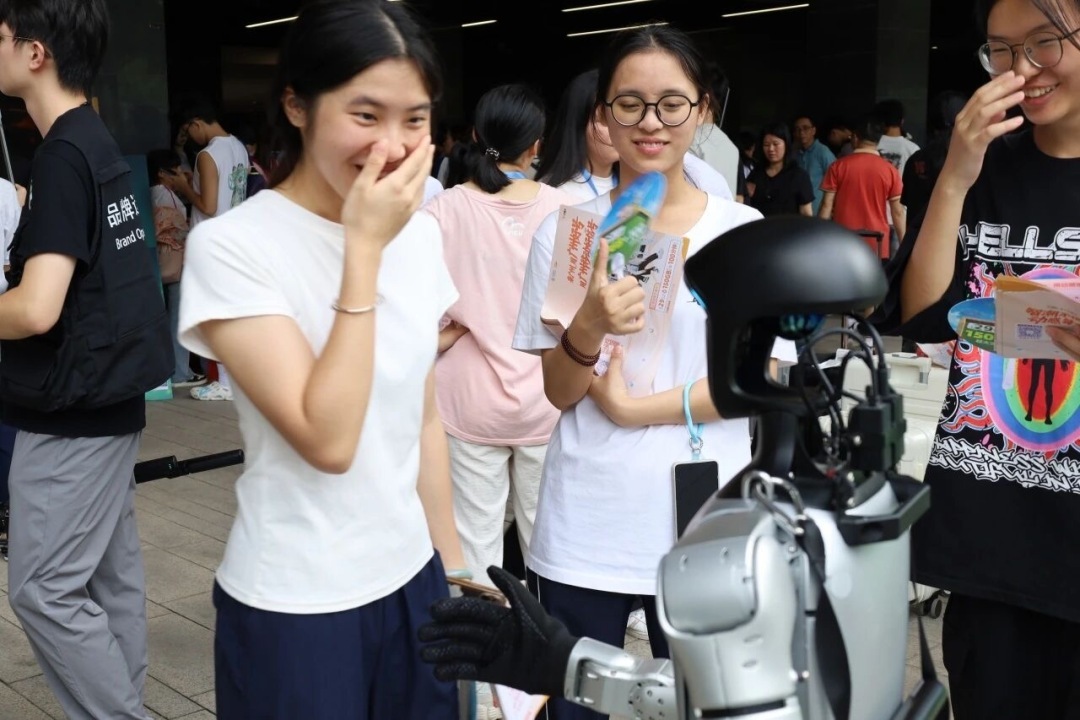 与往年不同的是,今年的迎新现场多了一群“特殊的工作人员”——身形灵动、科技酷炫的智能具身机器人。它们穿梭在人群中,与新生、家长热情互动,让整个报到过程科技感十足,成为校园里一道亮眼的风景线。一位来自甘肃的家长感慨道:“没想到机器人这么有趣,孩子在这里上学,肯定能跟上科技时代的步伐!”
