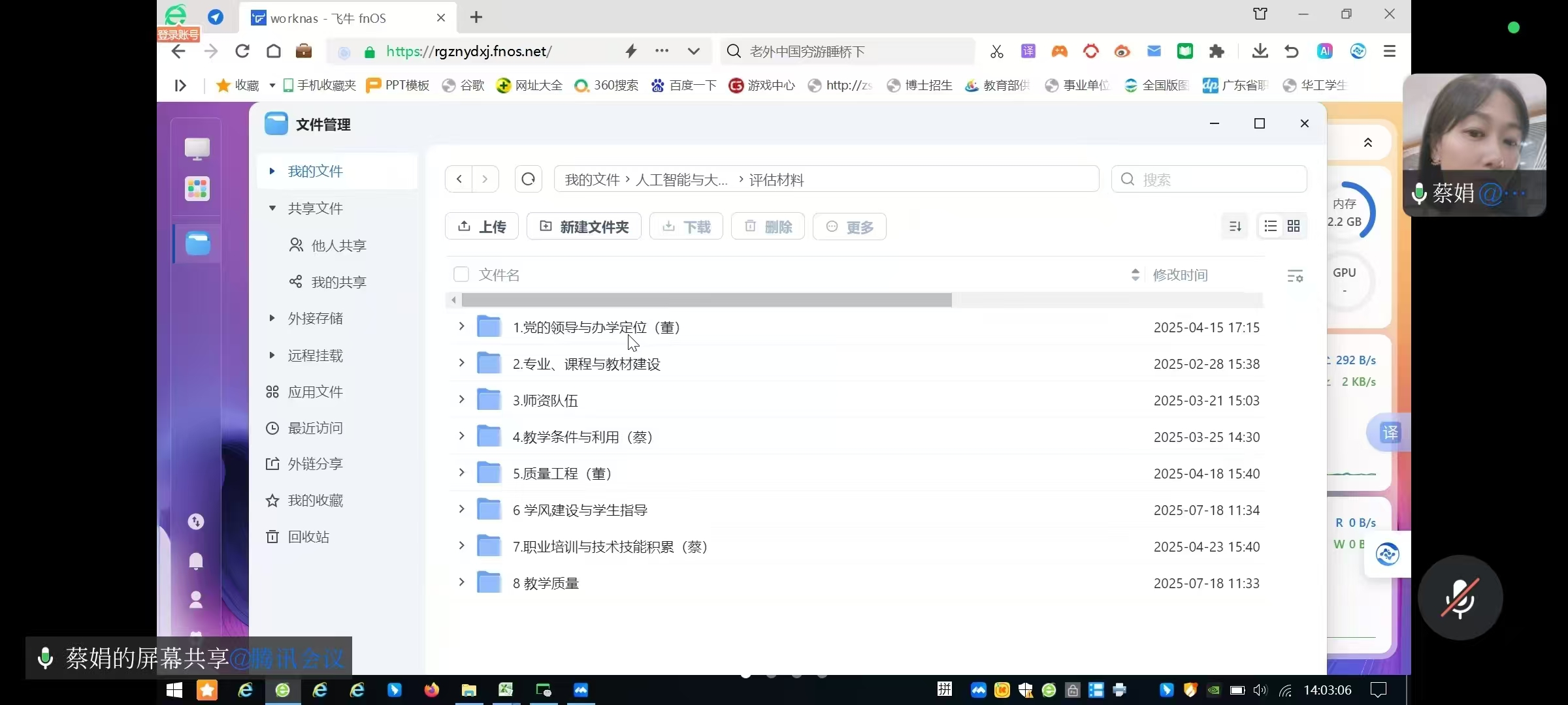 为全力冲刺评估,迎接返岗,2025年8月8日下午14:00,人工智能与大数据学院通过腾讯会议平台组织召开了第三次学院评估材料整理会。蔡娟院长、肖琳书记、董艺副院长、李唐玉副书记及人工智能与大数据学院评估材料组全体成员参加会议。