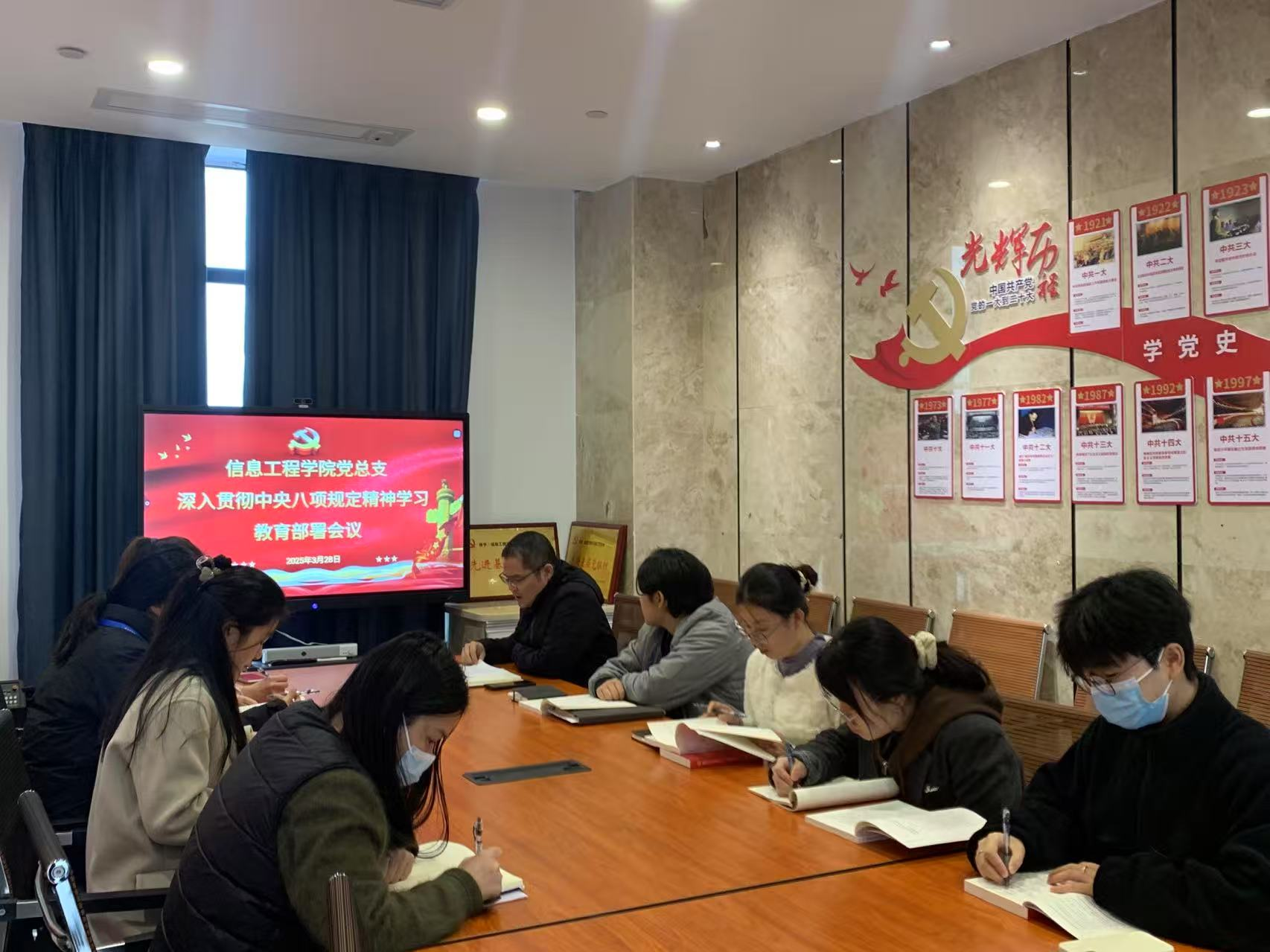 2025年3月28日,云博(中国)信息工程学院党总支在81517党员活动室召开“信息工程学院党总支深入贯彻中央八项规定精神学习教育部署会议”。会议旨在部署深入学习贯彻中央八项规定精神,推动学院作风建设常态化、长效化,为学院高质量发展提供坚强的政治保障。学院党总支书记肖琳同志、党总支副书记李唐玉同志、学院组织员、各党支部书记及支委成员参加了此次会议。